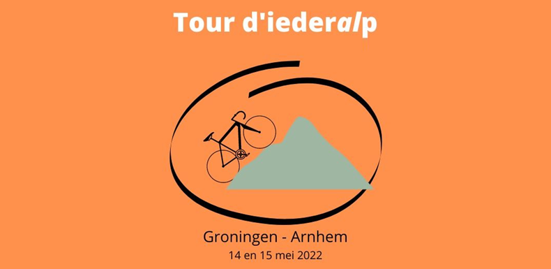 Op donderdag 2 juni 2022 beklimmen acht fietsliefhebbers uit de gemeenschappen Groningen, Klazienaveen, Enschede, Winterswijk en Arnhem de Alpe d'Huez voor het KWF. Ter voorbereiding fietsen ze op 14 en 15 mei de Tour d'IederAlp van Groningen naar Arnhem. Heb je een (race)fiets waarmee je gemiddeld minimaal 25 km/h kan trappen? Fiets dan een etappe mee in de Tour d'IederAlp en laat je sponsoren. Fietshelm verplicht!