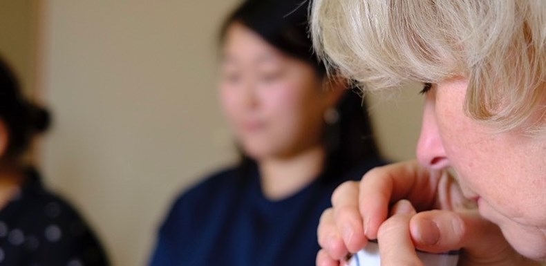 Claudia: 'We gaan samen langs verschillende ceremoniële handelingen en spelen het geurraadsel na. Het is een vereenvoudigde versie die een goede indruk geeft van de echte Kodo-ceremonie.'