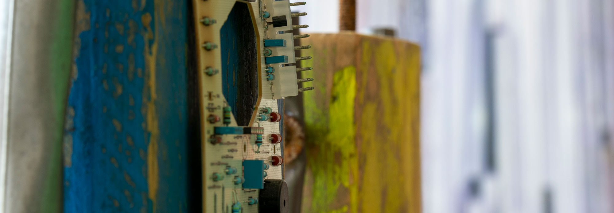 Je ontdekt in dit werk elke keer weer nieuwe grappige details, waaronder sleutels van de Leidse Zijlpoort (stadspoort), schakelaars en printplaten.