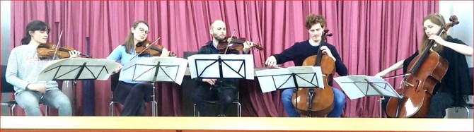 Een ensemble van beroepsmusici voeren het prachtige strijkkwintet van Schubert D.956 uit. Het ensemble bestaat uit: Charlotte Basalo Vazquez en Julia Kleinsma (viool), Hessel Moeselaar (altviool), Kalle de Bie en Renate Apperloo (cello).
